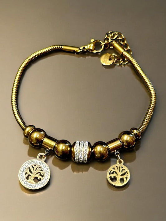 Tree Charm Bracelet in Gold Tone | Anti-Tarnish Finish | Handcrafted Women’s Jewelry with Stones