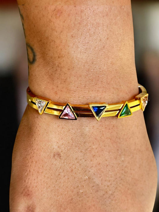 Triangular-Shaped Multicolor Stones Bracelet for Women | Gold Tone | Anti-Tarnish Finish | Adjustable Handcrafted Jewelry