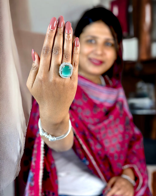 American Diamond with Green Oval Stone Ring
