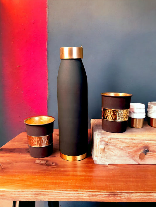 Copper Bottle with Two Glasses with Matt Finish Coat