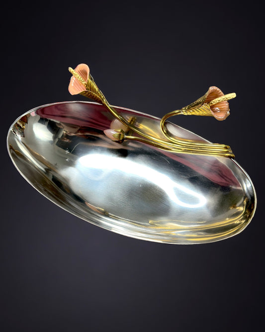Rectangular Hammered Elegant Rose Bud Platter in Stainless Steel for Table Decor