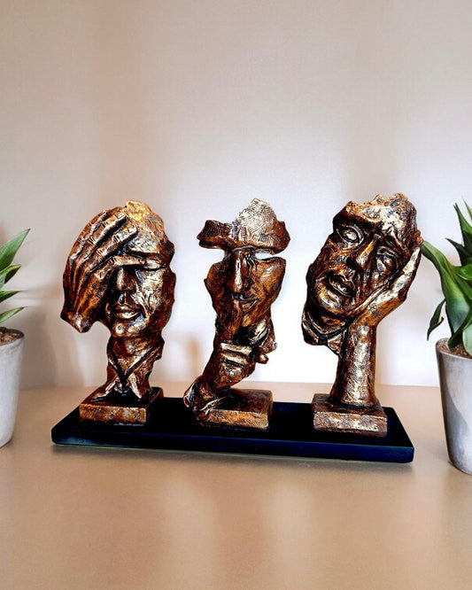 Three Men Face Statue Table Décor Piece 10 inch
