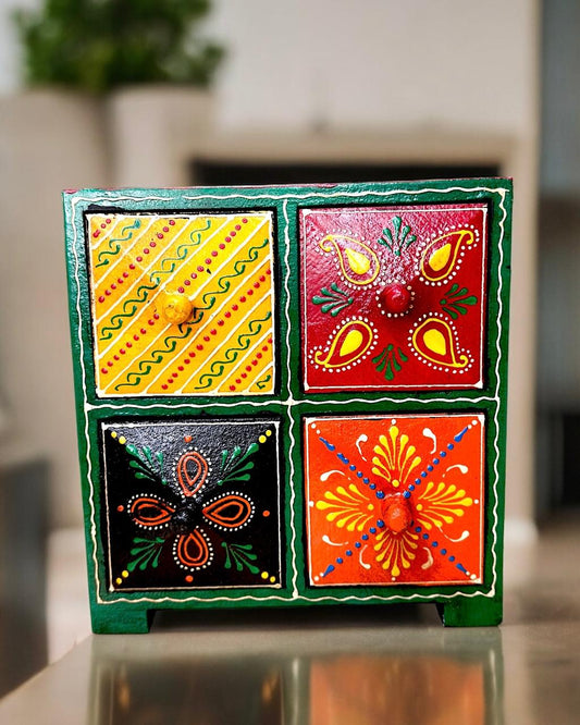 Wooden Hand-painted Four Drawer Storage Box for Jewellery 7 Inch