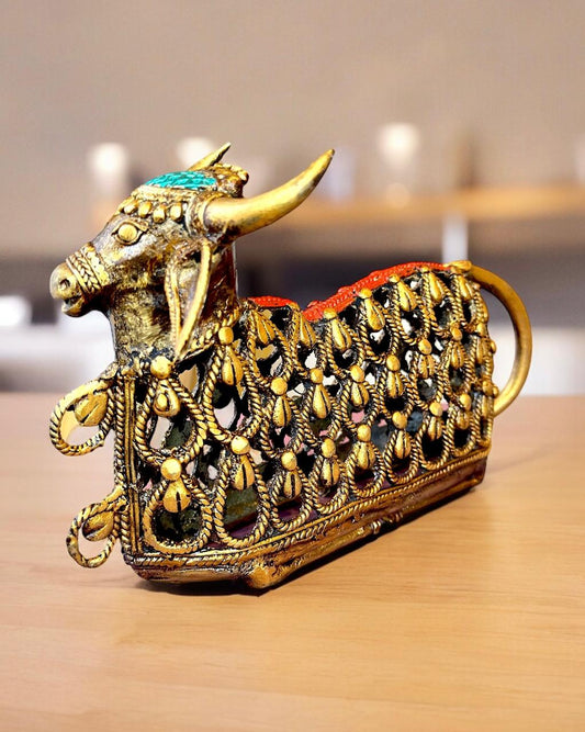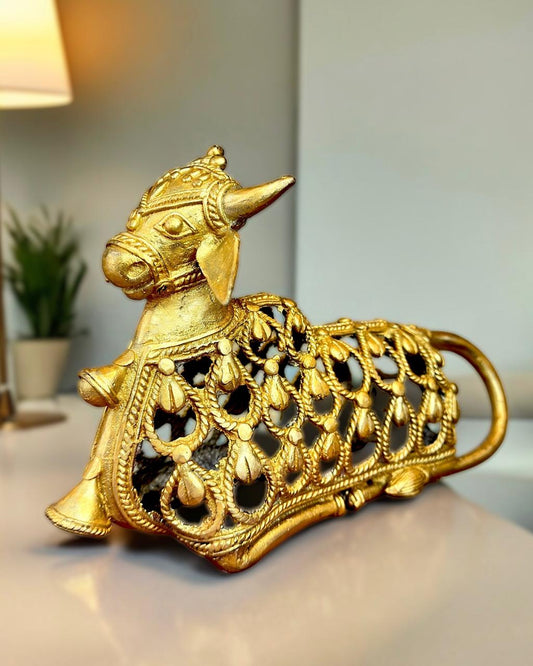 Pure Brass Nandhi, Mohenjo-daro Dhokra Art Sculpture 8.5 inch