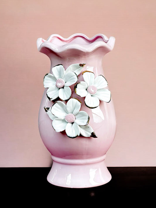 Ceramic Flower Vase - Pink & White Floral Design (8 Inch) | Elegant Home Décor
