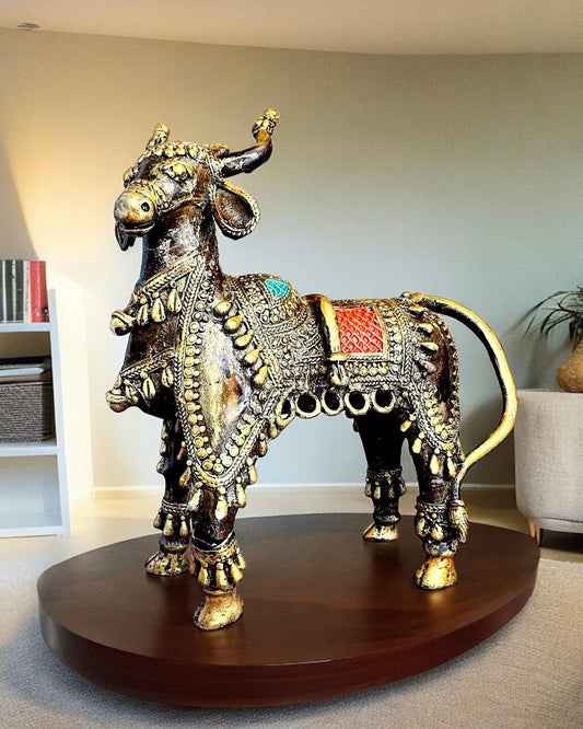 Kamdhenu Cow Mohenjo-daro Dhokra Art Sculpture 8.5 inch
