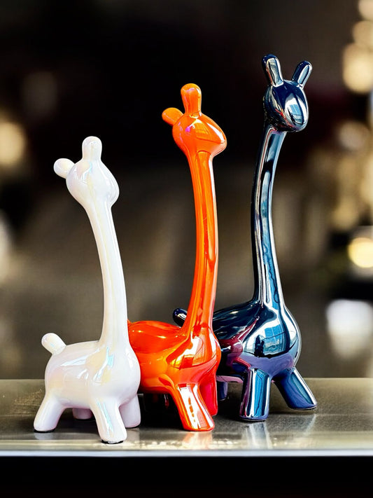 Trio of Elegance: Glossy Ceramic Giraffe Set
