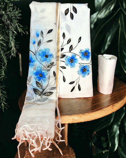 Hand Painted Cotton Suit Fabric with Kota Dupatta