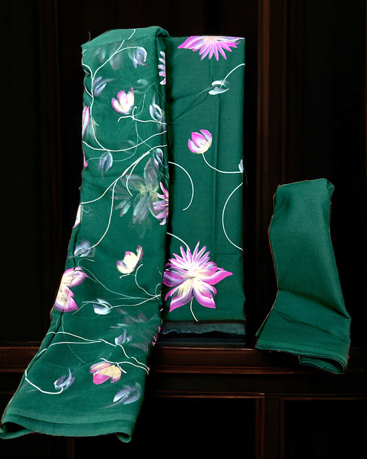 Hand Painted Cotton Suit Fabric with Chiffon Dupatta