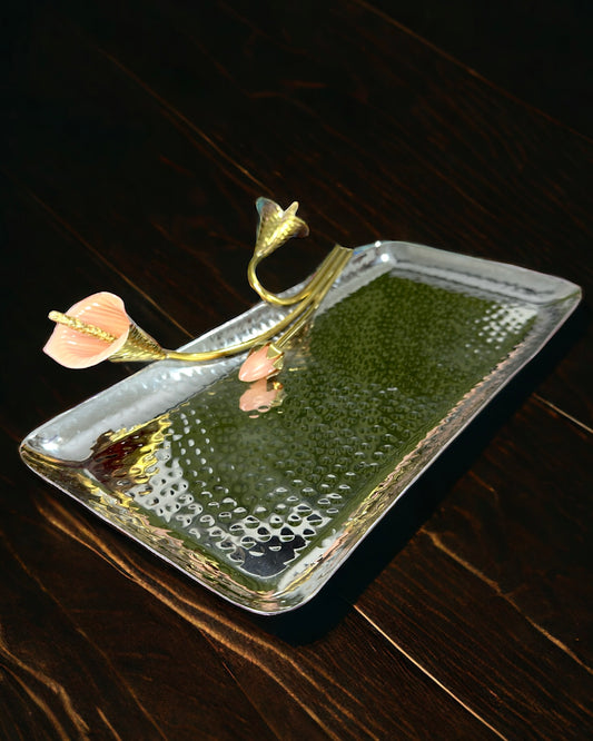 Rectangular Hammered Elegant Rose Bud Platter in Stainless Steel for Table Decor