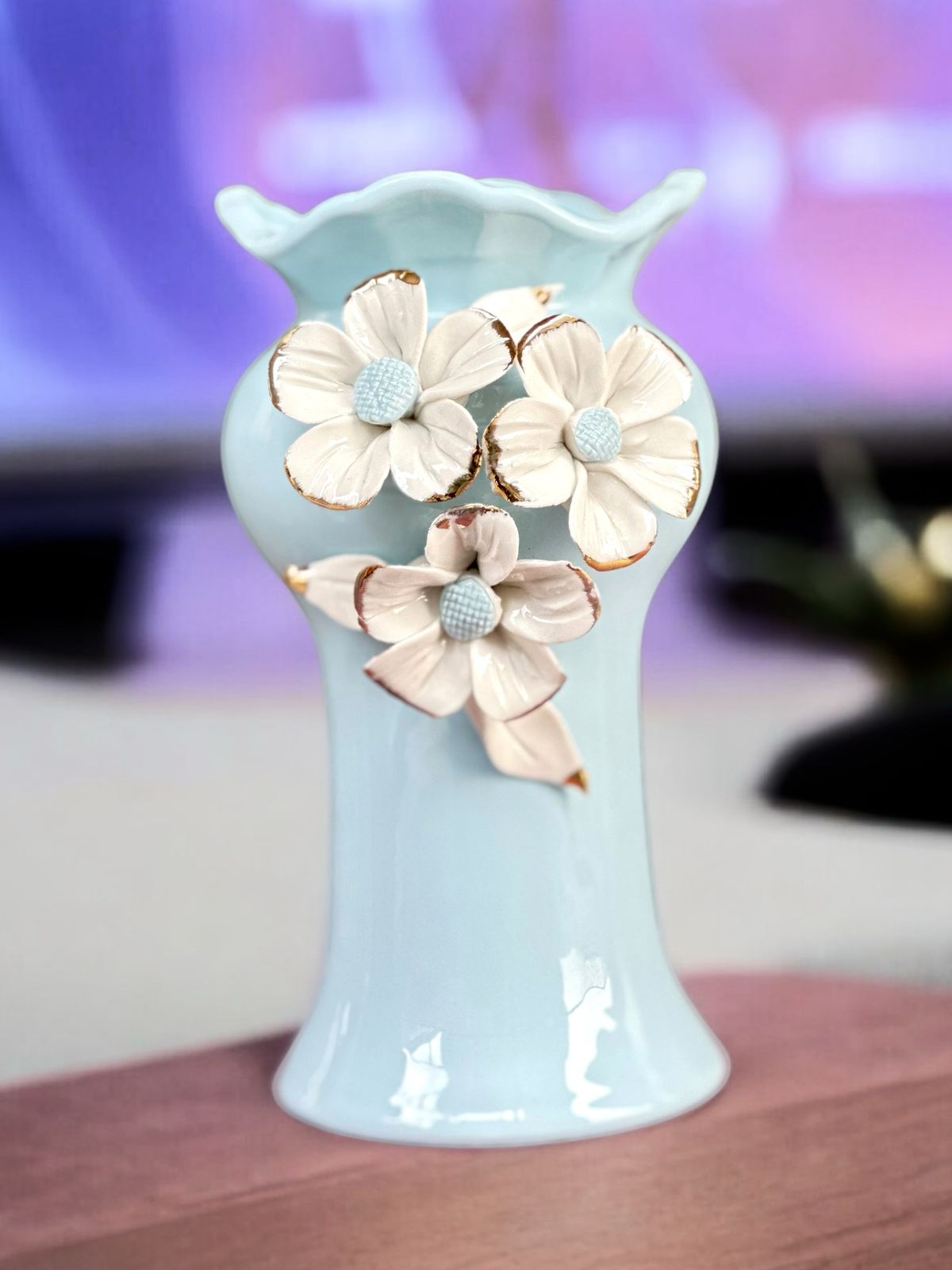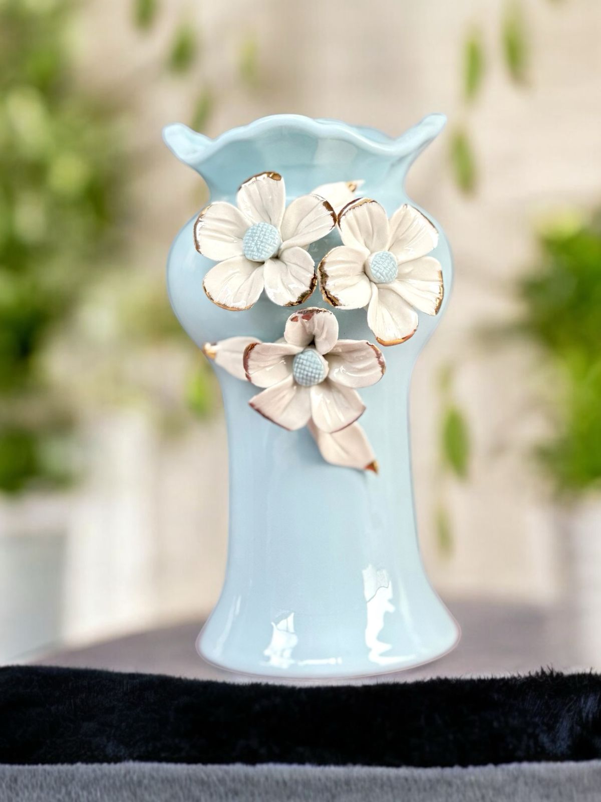 Ceramic Flower Vase - Blue & White Floral Design (8 Inch) | Elegant Home Décor